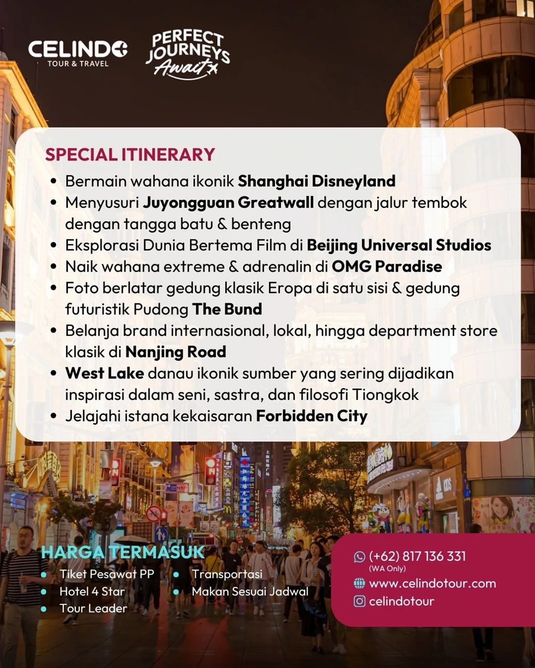 4. Paket tour yang sudah dibeli tidak dapat dibatalkan dari pihak peserta sesuai ketentuan di Celindo Tour & Travel